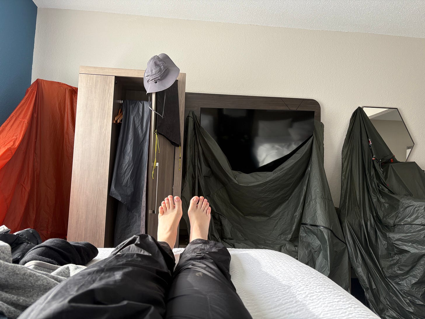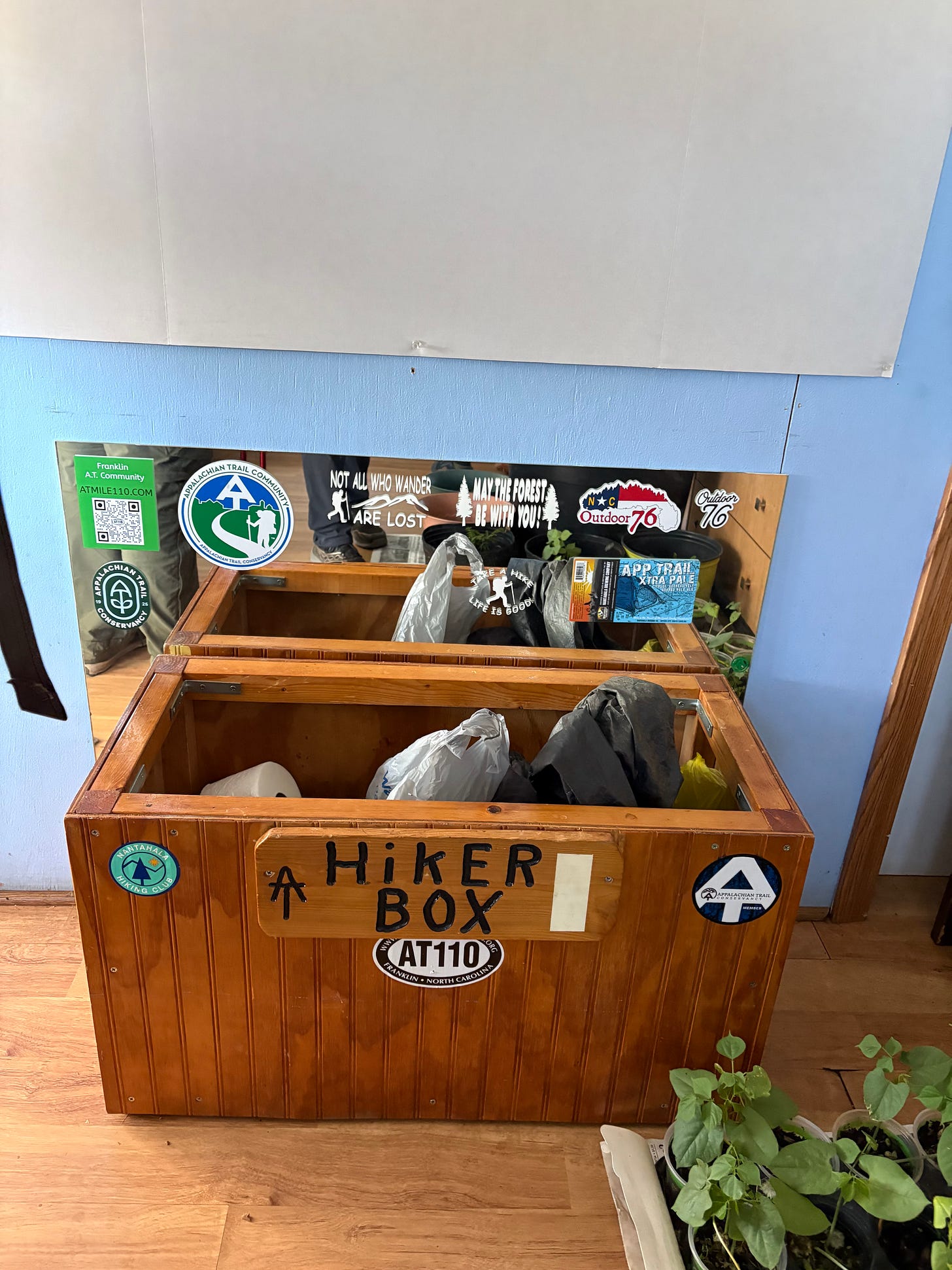 We feel a bit like celebrities as our giant packs, hiking poles, and smell give us away to locals who ask excitedly if we’re doing the whole trail with plenty of follow up questions. Since the towns are used to hikers there are also little treats aplenty like hiker lounges, free gear or food, and banners to sign. We also recognize each other immediately, sometimes clear from the “loaner clothes” places give when you’re doing laundry (usually ill-fitting pajama pants or a cheesy t-shirt). In one town stop a hiker we knew ran out of the burger joint to say hi and I returned back “ice cream??” to which he ran he over and joined us. Just as I am writing this, I was gifted a pre-stamped post card at the local brewery (Lazy Hiker Brewing) — which has hiker shoes hanging from the rafters — and invited to do some drawing for a local art project!