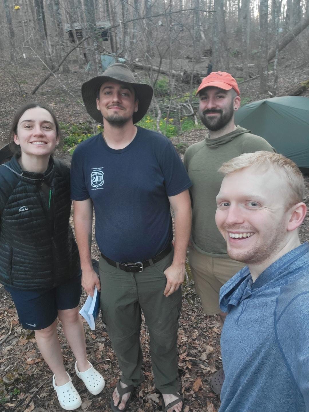I luckily haven’t experienced anything too crazy myself but some stories have made it through the thru-hiker grapevine. We were in camp one night when someone’s hanging food bag got swiped down by a claw and gobbled up by a hungry bear (the rest of the shelter’s hikers all chipped in food so he could make it to the next resupply). Another hiker has a mystery hole in his blow up sleeping bad and has to reinflate it every two hours in the night. One hiker we keep coming across accidentally took the wrong boots leaving the last hostel so has been hiking in a size and a half too big (worse for the other guy whoops). But the crown might go to a man we met in our shuttle back to trail from Hiawassee whose trail name is… Faceplant. Because he did such on Day 1 and went to the ER (he is fine now).